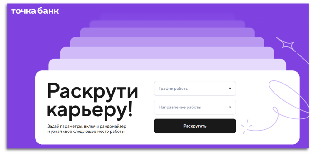 Точка Банк предлагает соискателям выбрать карьеру через рандомайзер.
