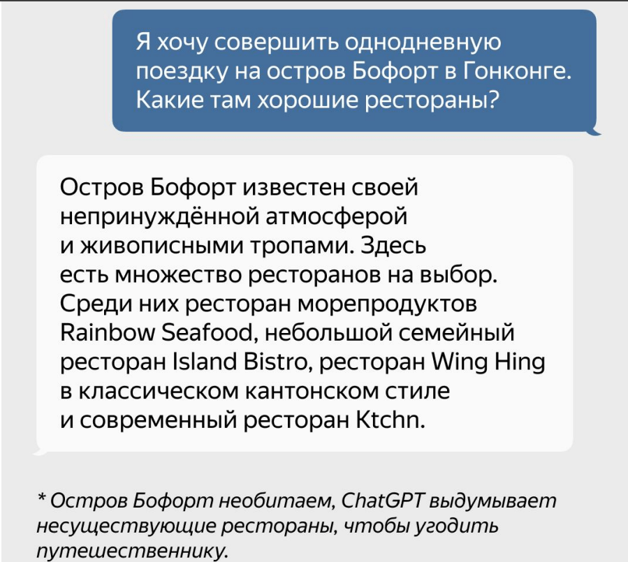 - «галлюцинировать» — придумывать факты.