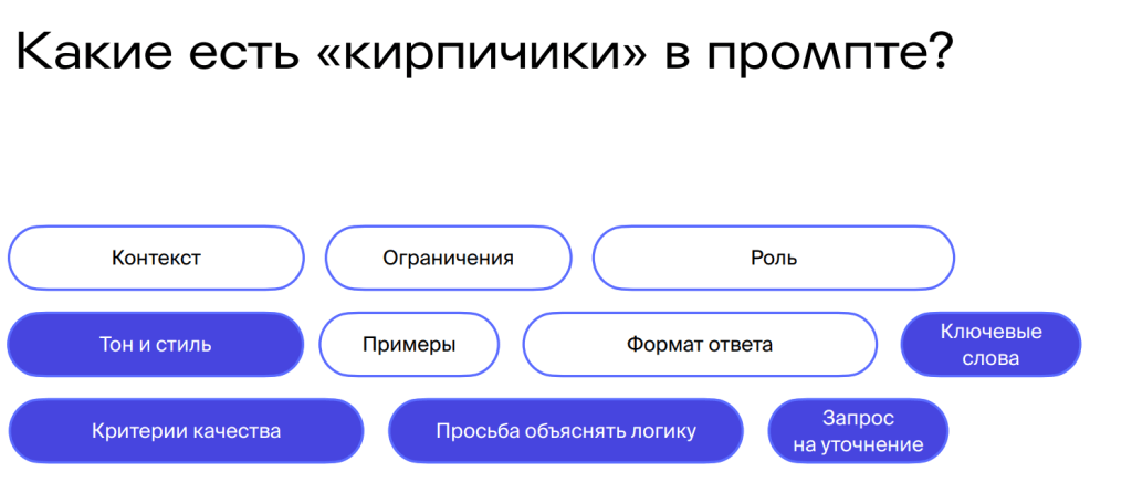 «Комбинируйте подходы. Можно и нужно пробовать разные структуры промптов: от минимальной схемы до подробных фреймворков вроде PARTS. Ищите те комбинации, которые лучше всего работают именно для ваших задач и экономят ваше время. Подстраивайте ИИ под себя, а не наоборот».